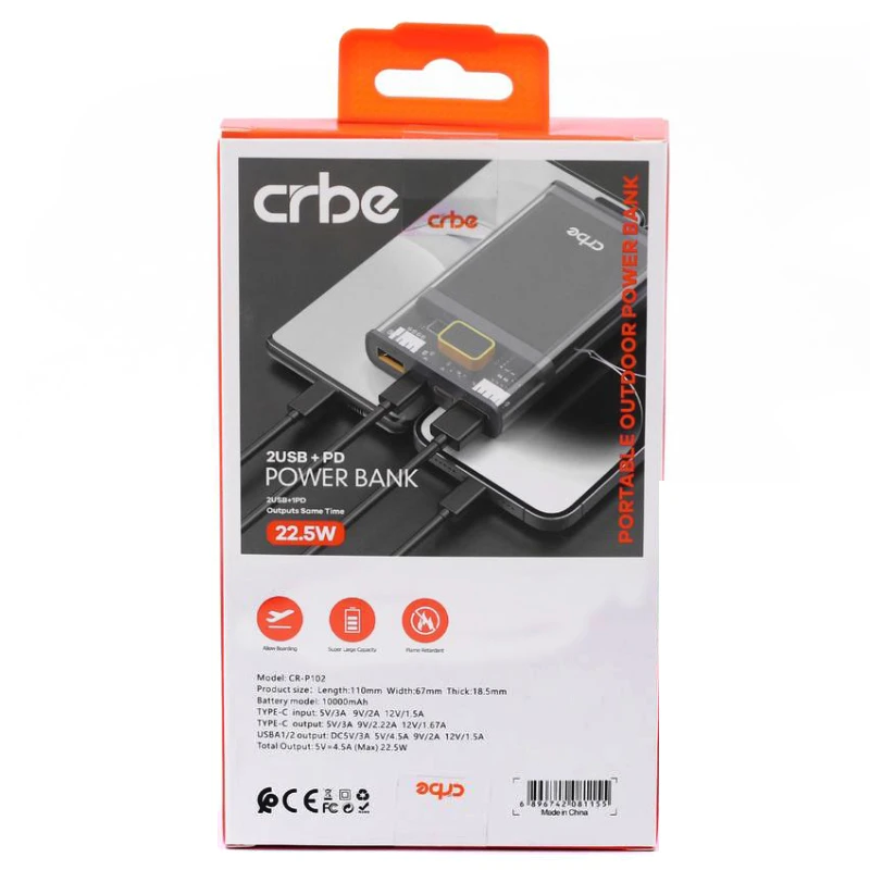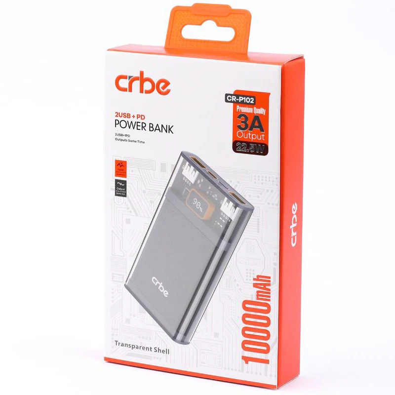 معرفی پاوربانک کربی CRBE مدل CR_P1O2 ظرفیت 10000 میلی آمپر ساعت