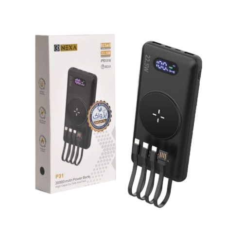 پاوربانک نکسا مدل P31 با ظرفیت ۲۰۰۰۰ میلیآمپر ساعت، طراحی مقاوم و مدرن، توان خروجی ۲۲.۵ وات و پشتیبانی از فناوریهای شارژ سریع، گزینهای مناسب برای افرادی است که به دنبال یک پاوربانک با عملکرد بالا و قابلیت حمل آسان هستند. وجود سه درگاه خروجی و کابلهای همراه، استفاده از این پاوربانک را برای کاربران راحتتر میکند.